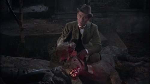 Cecile engaña a Sir Henry y lo conduce a su destino, repitiendo la escena inicial desencadenante de la trama. Sello Hammer en la puesta en escena
