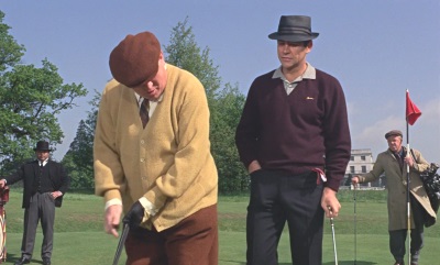 Pero estas partidas trajeron consigo el enfado de Ken Adam (diseñador de decorados), que harto de las charlas sobre golf entre Connery y Hamilton, desafió al primero a una partida apostando 100 libras. Connery le concedió 45 golpes de ventaja y se limitó a sí mismo a emplear un único palo. Ken perdió.