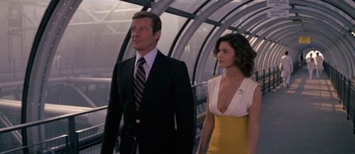 De vuelta en el hotel de Goodhead, Bond descubre que en realidad es una agente de la CIA, por lo que ya pueden pasar la noche juntos (de espía a espía, y me la tiro porque me apetecía...). Por la mañana siguiente, M, Bond y el ministro Gray se dirigen al recien descubierto laboratorio bajo las instalaciones de la cristalería Venini, pero al acceder a las mismas, se encuentran con un lujoso despacho en el que los recibe el mismísimo Drax, que se permite el lujo de ironizar sobre las máscaras de gas que portan. Tras el desencuentro, Drax encarga la contratación de Jaws para sustituir al difunto Chang, y por su parte, el ministro le pide a M que retire a Bond del caso.