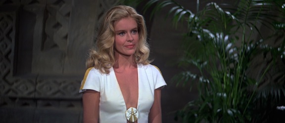 Tras aterrizar en medio de la selva, se encuentra a una joven que lo lleva hasta un templo antiguo (que realmente está en Guatemala), en cuyo interior se hallan varias chicas vestidas de forma similar, alguna de las cuales ya había visto anteriormente relacionadas con Drax. Pero embelesado ante tanta belleza, cae en una trampa que lo conduce al estanque en el que una enorme pitón intenta comérselo, aunque gracias al bolígrafo aguja de Goodhead logra acabar con la serpiente. Lo que no logra impedir es que Jaws lo detenga al salir el estanque.