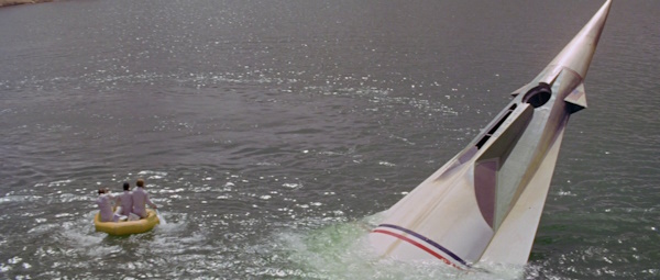 Momento en que los tres pilotos supervivientes salen de la nave.