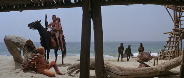 En el final, vemos al Dr. Zaius atado como si fuese una bestia, a Taylor ya afeitado dispuesto a huir, a Nova que se va con él, y a Charlton Heston con un rifle nacional.
