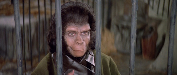 Escena en la que tras ser apresado nuevamente, Taylor dice la famosa frase "Get your stinking paws off me, you damned dirty ape" (Quita tus apestosas garras de mí, maldito simio sucio).