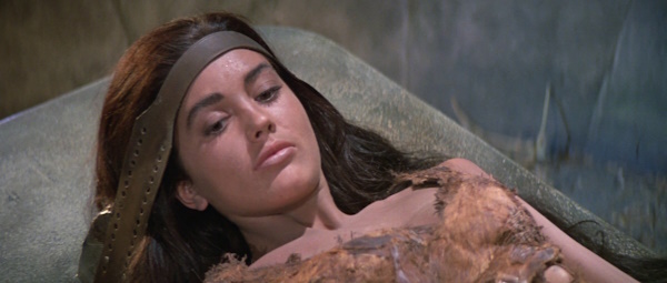 Linda Harrison recibiendo asistencia médica, ¿o veterinaria, tal vez?.