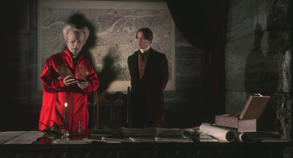Anthony Hopkins hace doblete interpretando también al religioso que aparece en el flashback. También pone la voz de la narración del viaje del Demeter