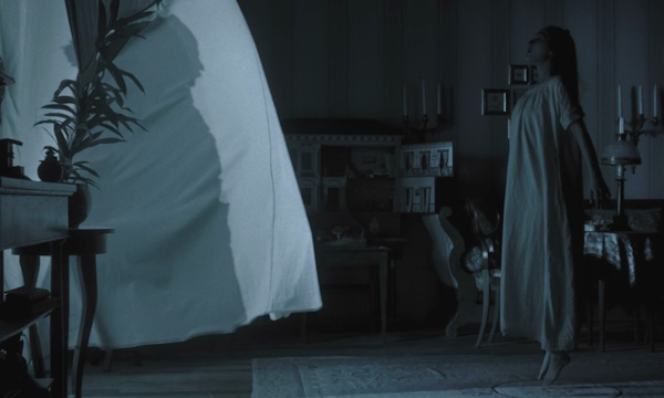 Buena escena en la que se proyectaba la sombra del conde sobre las cortinas en movimiento