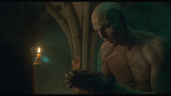 Excelente escena en la que Elizabeth y la criatura se conocen, interactuando bastante más que con su creador.