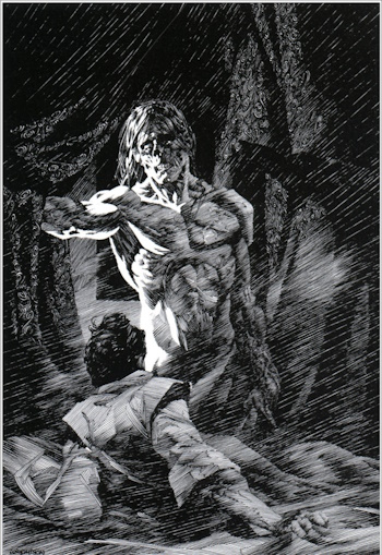 En este caso, la secuencia en la que la criatura se le aparece por primera vez a Víctor está tomada de otra ilustración del genial Wrightson