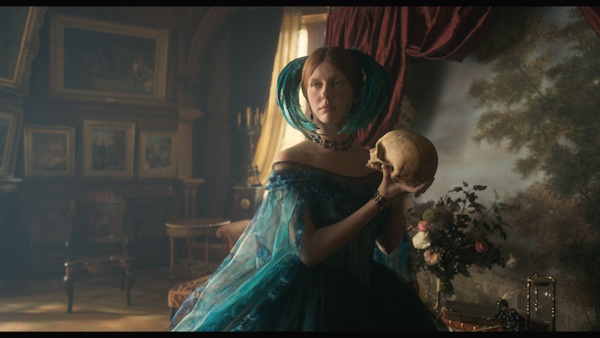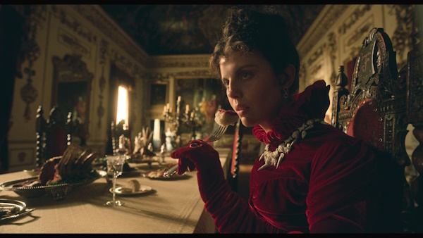 Mia Goth también representa a Claire Frankenstein, madre de Víctor, con la que este tiene una relación de mucha dependencia.