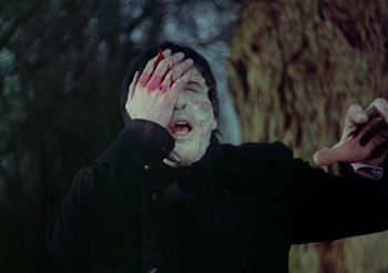Momento en el que el monstruo recibe un disparo en la cara: a la izquierda Frankenstein (Guillermo del Toro - 2025) y la derecha The Curse of Frankenstein (Terence Fisher - 1957). Tanto el movimiento del actor como el gesto de llevarse la mano a la cara y salir sangre entre los dedos es practicamente idéntico.
